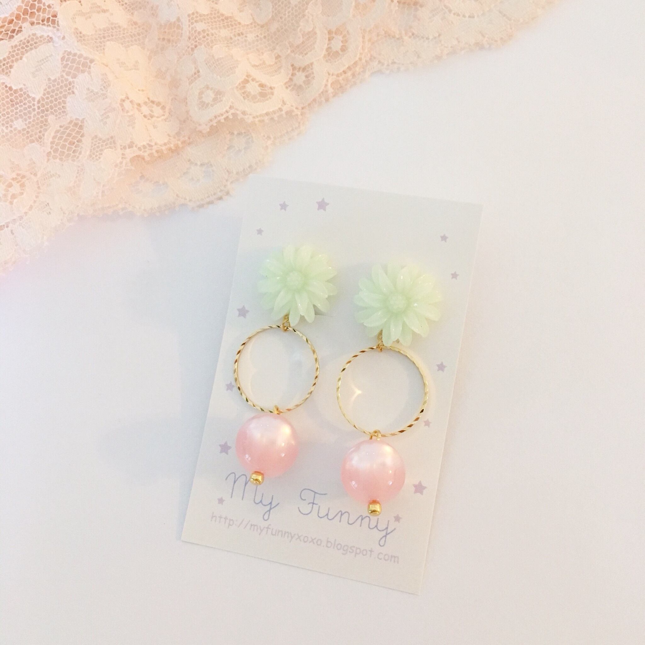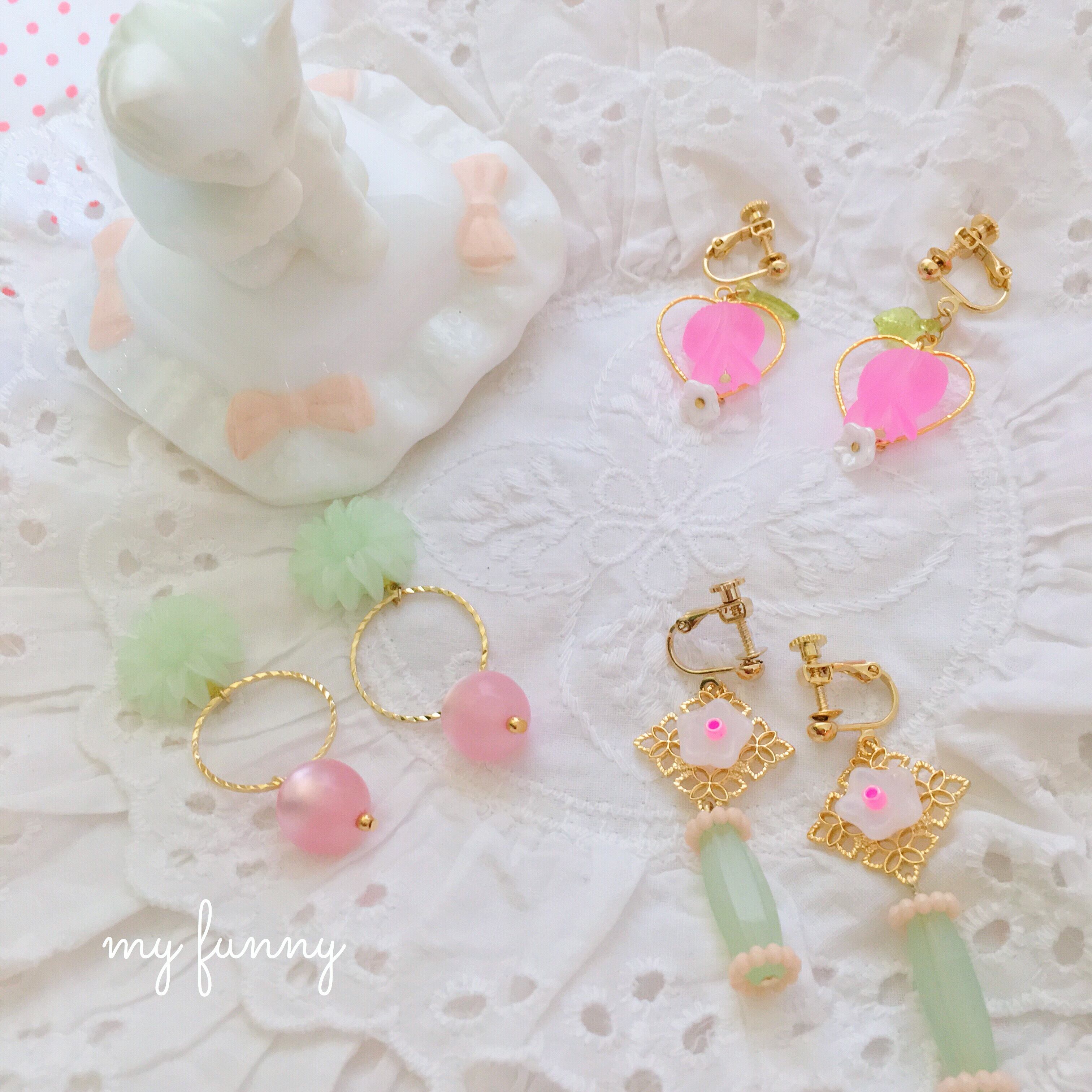 コロンとしたピンクのボールが耳元で揺れて、とても可愛い耳飾りです。